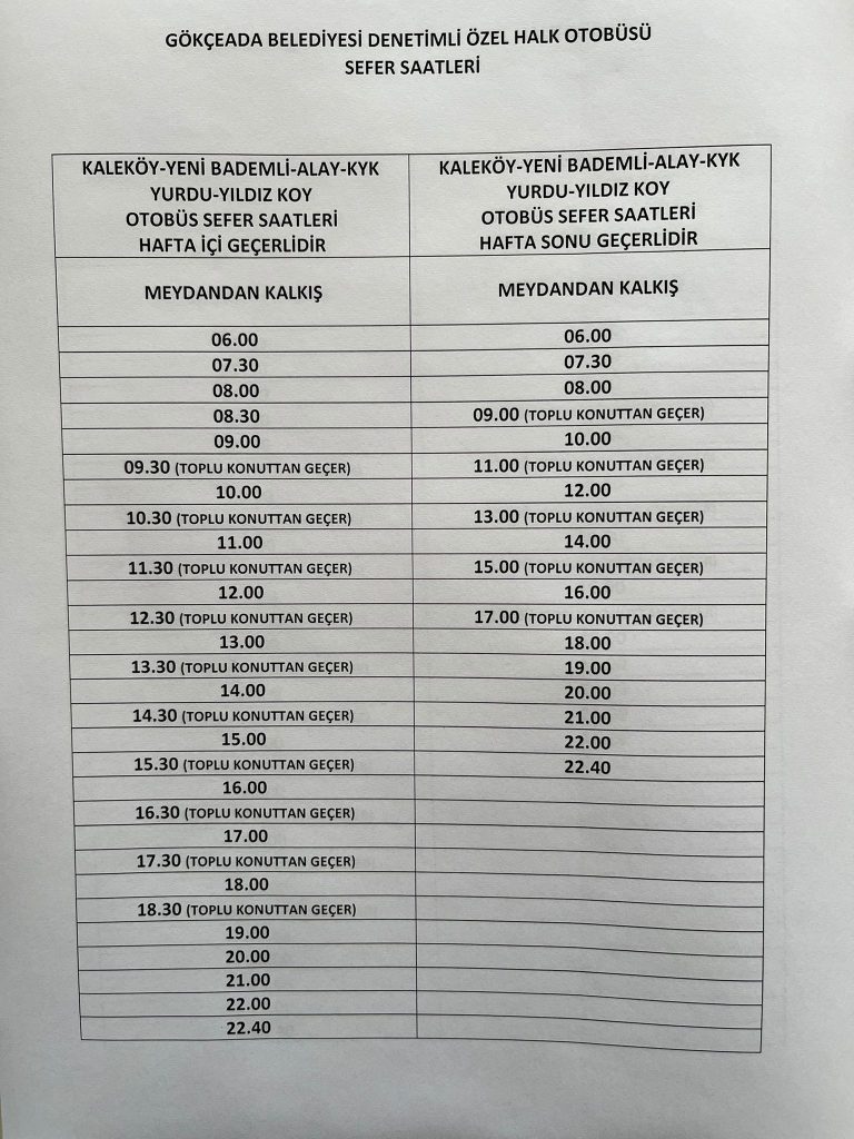 ÖZEL HALK OTOBÜSÜ SEFER SAATLERİ
